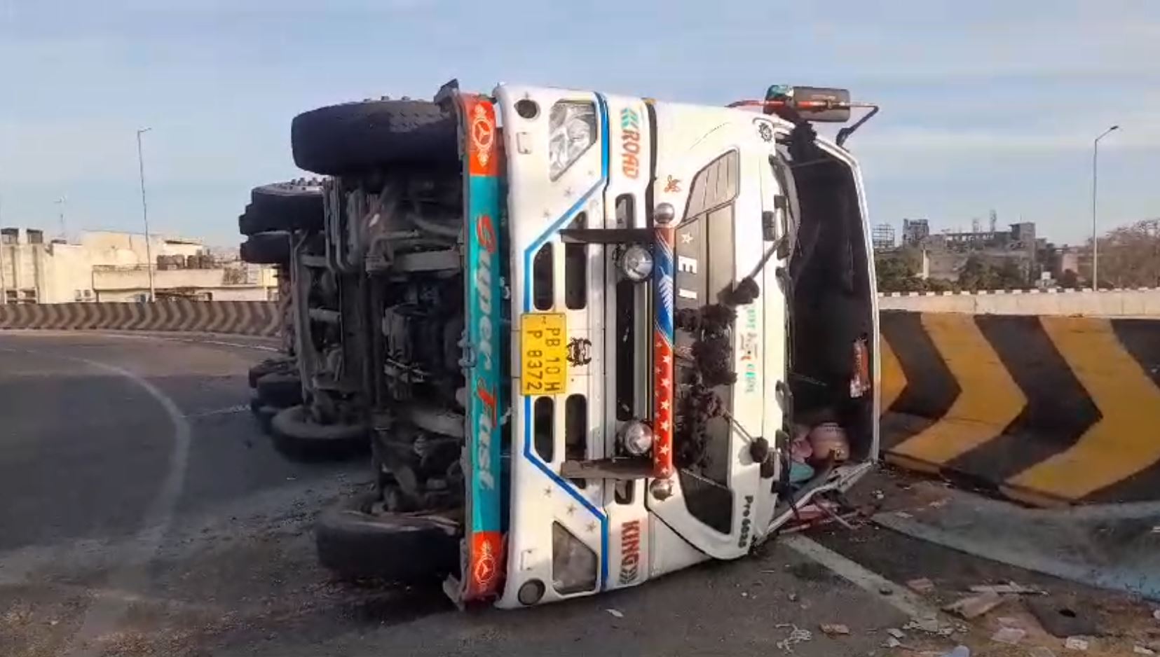 ਲੁਧਿਆਣਾ ਦੇ ਬੱਸ ਸਟੈਂਡ ਨੇੜਲੇ ਪੁਲ ਤੇ ਅੱਜ ਤੜਕਸਾਰ ਹਾਲਾਤ ਉਸ ਵੇਲੇ ਦਹਿਸ਼ਤ ਵਾਲੇ ਬਣ ਗਏ ਜਦੋਂ ਉੱਥੇ ਗੁਜਰ ਰਿਹਾ ਗੈਸ ਨਾਲ ਭਰਿਆ ਟੈਂਕਰ ਅਚਾਨਕ ਪਲਟ ਗਿਆ। ਟੈਂਕਰ ਵਿਚ ਕਾਰਬਨ ਡਾਈਆਕਸਾਈਡ ਗੈਸ ਭਰੀ ਹੋਈ ਸੀ, ਜੋ ਟੈਂਕਰ ਪਲਟਣ ਕਾਰਨ ਲੀਕ ਹੋਣੀ ਸ਼ੁਰੂ ਹੋ ਗਈ, ਜਿਸ ਕਾਰਨ ਰਾਹਗੀਰਾਂ ਅਤੇ ਨੇੜਲੇ ਇਲਾਕੇ ਅੰਦਰ ਦਹਿਸ਼ਤ ਦਾ ਮਾਹੌਲ ਬਣ ਗਿਆ। ਘਟਨਾ ਤੜਕੇ 3 ਵਜੇ ਦੀ ਐ, ਜਦੋਂ ਇੱਥੋਂ ਲੰਘ ਰਿਹਾ ਟੈਂਕਰ ਬੇਕਾਬੂ ਹੋ ਕੇ ਪਲਟ ਗਿਆ। ਹਾਦਸੇ ਦੀ ਸੂਚਨਾ ਮਿਲਦਿਆਂ ਹੀ ਪੁਲਿਸ ਪਾਰਟੀ ਤੁਰੰਤ ਮੌਕੇ ‘ਤੇ ਪਹੁੰਚੀ ਅਤੇ ਅਹਿਤਿਆਤ ਵਜੋਂ ਸੜਕ ‘ਤੇ ਆਵਾਜਾਈ ਨੂੰ ਬੰਦ ਕਰ ਦਿੱਤਾ ਗਿਆ। ਟਰੱਕ ਪਲਟਣ ਕਾਰਨ ਗੈਸ ਬੜੀ ਲੀਕ ਹੋਣੀ ਸ਼ੁਰੂ ਹੋ ਗਈ, ਜਿਸ ਦੇ ਚਲਦਿਆਂ ਫਾਇਰ ਬ੍ਰਿਗੇਡ ਨੂੰ ਵੀ ਮੌਕੇ ਤੇ ਬੁਲਾਇਆ ਗਿਆ। ਪੁਲਿਸ ਵੱਲੋਂ ਹਾਦਸੇ ਵਾਲੀ ਜਗ੍ਹਾ ਨੂੰ ਆਮ ਲੋਕਾਂ ਲਈ ਸੀਲ ਕਰ ਦਿੱਤਾ ਗਿਆ ਹੈ ਤੇ ਫ਼ਲਾਈਓਵਰ ਉੱਪਰੋਂ ਆਵਾਜਾਈ ਪੂਰੀ ਤਰ੍ਹਾਂ ਬੰਦ ਕਰ ਦਿੱਤੀ ਗਈ ਹੈ। ਖਬਰ ਲਿਖੇ ਜਾਣ ਤਕ ਗੈਸ ਲੀਕ ਨੂੰ ਰੋਕਣ ਦੀਆਂ ਕੋਸ਼ਿਸ਼ਾਂ ਜਾਰੀ ਸਨ।
