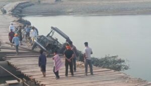 ਗੁਰਦਾਸਪੁਰ ਦੇ ਮਕੌੜਾ ਪੱਤਣ ਤੇ ਅੱਜ ਉਸ ਵੇਲੇ ਵੱਡਾ ਹਾਦਸਾ ਵਾਪਰ ਗਿਆ ਜਦੋਂ ਇੱਥੇ ਸਥਿਤ ਪਲਟੂਨ ਪੁਲ ਤੋਂ ਲੰਘ ਰਹੇ ਟਰੈਕਟਰ-ਟਰਾਲੀ ਸੰਤੁਲਨ ਵਿਗੜਣ ਕਾਰਨ ਦਰਿਆ ਵਿਚ ਡਿੱਗ ਗਏ। ਹਾਦਸੇ ਵਿਚ ਟਰੈਕਟਰ ਚਾਲਕ ਦਾ ਵਾਲ ਵਾਲ ਬਚਾਅ ਹੋ ਗਿਆ ਜਦਕਿ ਟਰੈਕਟਰ ਟਰਾਲੀ ਨੂੰ ਕਾਫੀ ਨੁਕਸਾਨ ਪਹੁੰਚਿਆ ਐ। ਜਾਣਕਾਰੀ ਅਨੁਸਾਰ ਰਾਵੀ ਦਰਿਆ ਤੋਂ ਪਾਰਲੇ ਪਾਸੇ ਦੇ ਕਿਸਾਨਾਂ ਵੱਲੋਂ ਆਪਣੀਆਂ ਫਸਲਾਂ ਨੂੰ ਮੰਡੀਆਂ ਤਕ ਪਹੁੰਚਾਉਣ ਲਈ ਪਲਟੂਨ ਪੁਲ ਦਾ ਇਸਤੇਮਾਲ ਕੀਤਾ ਜਾਂਦਾ ਐ। ਇਸੇ ਤਹਿਤ ਪਾਰਲੀ ਪਿੰਡ ਝੂਮਰ ਦਾ ਇਕ ਕਿਸਾਨ ਟਰੈਕਟਰ ਟਰਾਲੀ ਵਿਚ ਗੰਨਾ ਲੱਦ ਕੇ ਦਰਿਆ ਦੇ ਦੂਜੇ ਪਾਸੇ ਸਥਿਤ ਪਨਿਆੜ ਮਿੱਲ ਵਿਖੇ ਜਾ ਰਿਹਾ ਸੀ ਕਿ ਪਲਟੂਨ ਪੁਲ ਤੇ ਆ ਕੇ ਟਰੈਕਟਰ ਟਰਾਲੀ ਦਾ ਅਚਾਨਕ ਸੰਤੁਲਨ ਵਿਗੜ ਗਿਆ ਅਤੇ ਬੇਕਾਬੂ ਹੋ ਕੇ ਟਰਾਲਾ ਦਰਿਆ ਵਿਚ ਡਿੱਗ ਗਈ ਜਦਕਿ ਟਰੈਕਟਰ ਪੁਲ ਦੇ ਉਪਰ ਲਈ ਅਟਕ ਗਿਆ। ਇਸ ਹਾਦਸੇ ਵਿਚ ਡਰਾਈਵਰ ਦਾ ਵਾਲ ਵਾਲ ਬਚਾਅ ਹੋ ਗਿਆ ਜਦਕਿ ਟਰਾਲੀ ਦੇ ਪਾਣੀ ਵਿਚ ਡਿੱਗਣ ਕਾਰਨ ਗੰਨਿਆਂ ਦਾ ਕਾਫੀ ਨੁਕਸਾਨ ਹੋਇਆ ਐ। ਇਸੇ ਦੌਰਾਨ ਪੁਲ ਤੋਂ ਆਵਾਜਾਈ ਰੁਕਣ ਕਾਰਨ ਰਾਹਗੀਰਾਂ ਨੂੰ ਭਾਰੀ ਪ੍ਰੇਸ਼ਾਨੀ ਸਹਿਣੀ ਪਈ। ਜ਼ਿਕਰਯੋਗ ਐ ਕਿ ਸਥਾਨਕ ਵਾਸੀਆਂ ਵੱਲੋਂ ਕਾਫੀ ਸਮੇਂ ਤੋਂ ਇੱਥੇ ਪੱਕਾ ਪੁਲ ਬਣਾਉਣ ਦੀ ਮੰਗ ਕੀਤੀ ਜਾ ਰਹੀ ਐ ਪਰ ਸਿਆਸੀ ਆਗੂਆਂ ਵੱਲੋਂ ਲਾਰੇ ਲਾਉਣ ਤੋਂ ਸਿਵਾ ਕੁੱਝ ਨਹੀਂ ਕੀਤਾ ਗਿਆ। ਸਥਾਨਕ ਵਾਸੀਆਂ ਨੇ ਸਰਕਾਰ ਤੋਂ ਇਸ ਥਾਂ ਤੇ ਪੱਕਾ ਪੁੱਲ ਬਣਾਉਣ ਦੀ ਮੰਗ ਕੀਤੀ ਐ ਤਾਂ ਜੋ ਲੋਕਾਂ ਨੂੰ ਦਰਪੇਸ਼ ਮੁਸ਼ਕਲਾਂ ਦਾ ਪੱਕਾ ਹੱਲ ਹੋ ਸਕੇ।